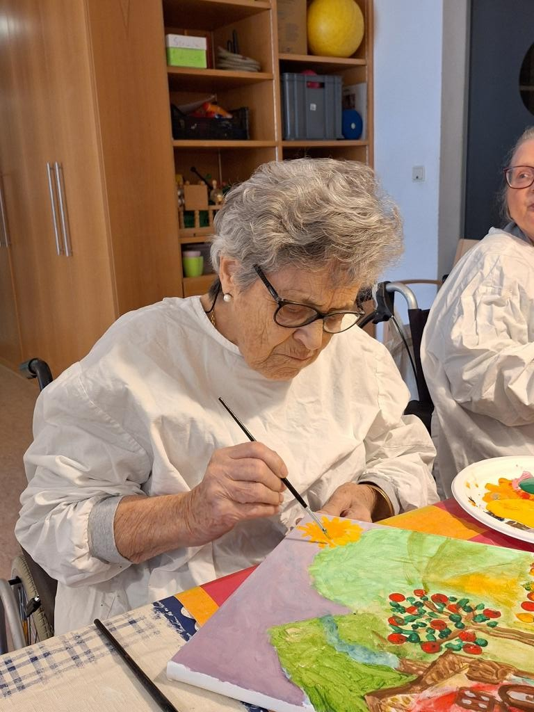Das malen fördert die Feinmotorik der Senioren, regt Ihre Kreativität an und lehrt sie verschiedene Maltechniken: Das malen mit Pinsel , Spachtel, Farbroller, Stempel usw. Es ist toll zu sehen, wie gerne die Senioren dieses Angebot annehmen und wie Sie mit viel Fleiß und Freude malen.