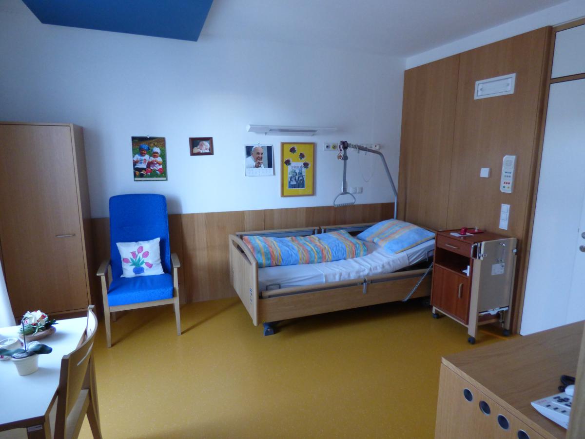 Tutte le stanze della Residenza di riposo sono munite di un bagno (con lavandino, doccia, WC) ed in singoli casi di un balcone; dispongono di letti per lungodegenti, armadio, angolo da sedere, sistema di chiamata di emergenza, allacciamento per il gas medicale e di un allacciamento per televisore.