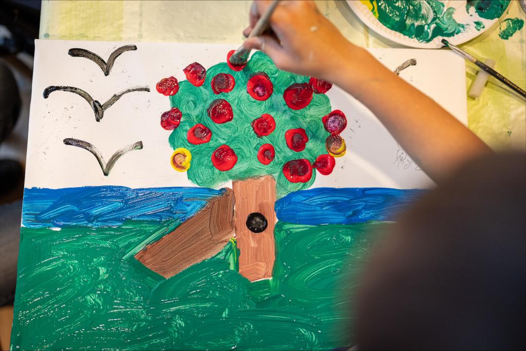 Beim zweiten und dritten Treffen wurde dann mit den Senioren gemalt. Das Thema lautete „Das Leben ist bunt“. Die SchülerInnen haben sich vorbereitet und sich bereits vorher Gedanken gemacht, wie sie ein Bild dazu gestalten könnten. So gingen sie dann entschlossen und mit großem Einsatz an die Arbeit, nicht ohne die SenioreInnen mit einzubinden. Die Bilder sollen dann in den Räumlichkeiten des Pilsenhofes aufgehängt werden.
