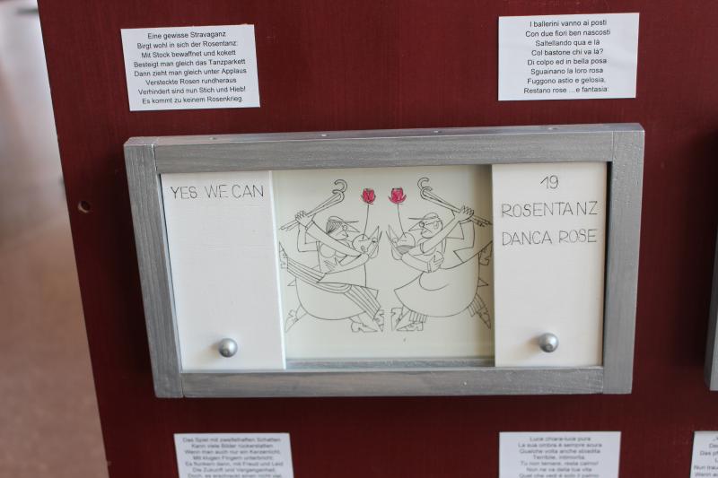 64 quadretti divisi in due parti con apposite cornici, in cui l'immagine cambia grazie al loro movimento, caratterizzano la nuova mostra itinerante "Yes we can". Le illustrazioni dell'artista Rainer Kainrath sono completate da un breve testo, formulato dalla penna dello scrittore teatrale, autore di libri e poeta Jul Bruno Laner.