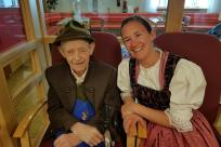 Allen voran die Ziachorgl, nachfolgend die Paare, so zieht die Volkstanzgruppe in den Saal ein. Sie werden schon mit Spannung erwartet und durch einen heftigen Applaus begrüßt. Eine Weile schaut man den tanzenden Paaren zu, klatscht zu den altbekannten Melodien. Dann hält die Tanzfreudigen nichts mehr. Aufgefordert von den jungen Madln und Burschen wagt man sich auf die Tanzfläche und fühlt sich in die Jugendjahre zurück versetzt. Ein sehr schöner und gelungener Nachmittag.