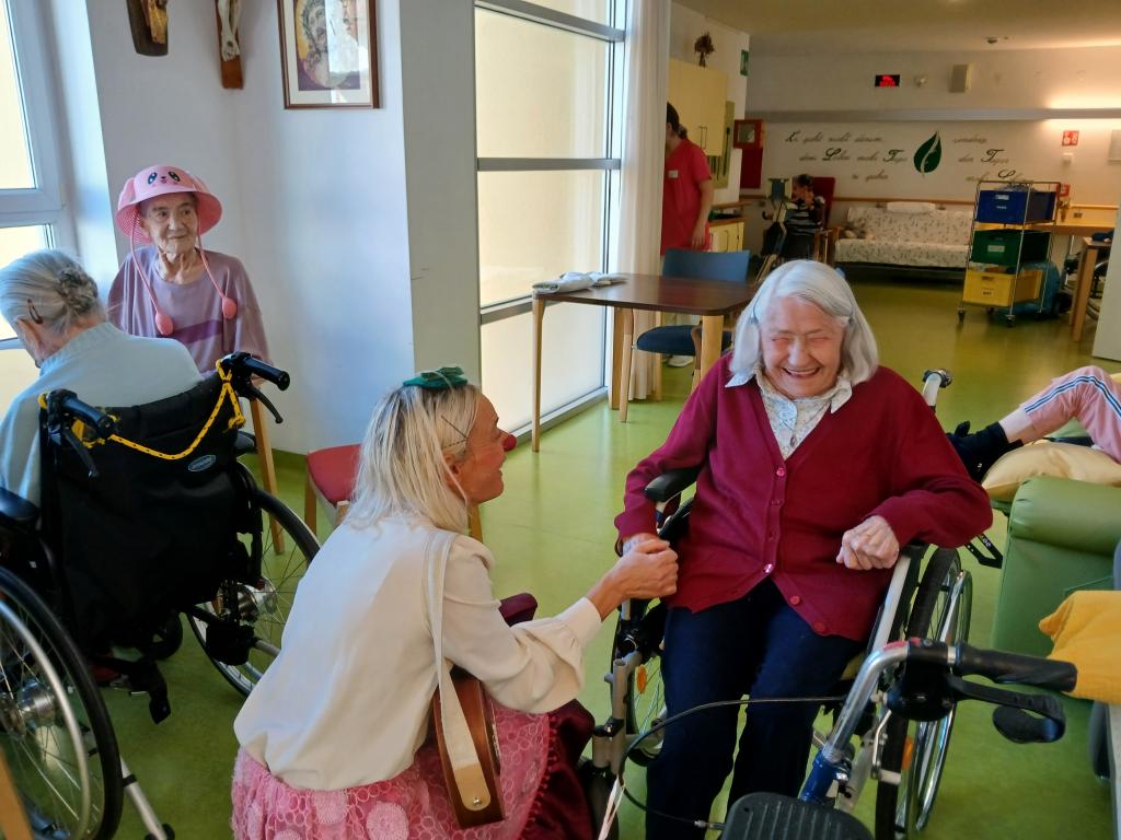 Ma anche come clown si dimostra professionalità; le due artiste hanno saputo interagire magistralmente con il loro pubblico. Con piccoli trucchi di magia, scherzi, canzoni o semplicemente uno sguardo amichevole, hanno fatto sorridere anche i residenti più tranquilli. Anche il personale di cura si è mostrato entusiasta: molti momenti divertenti sono stati immortalati con entusiasmo, incoraggiando tutti a partecipare e a cantare insieme.