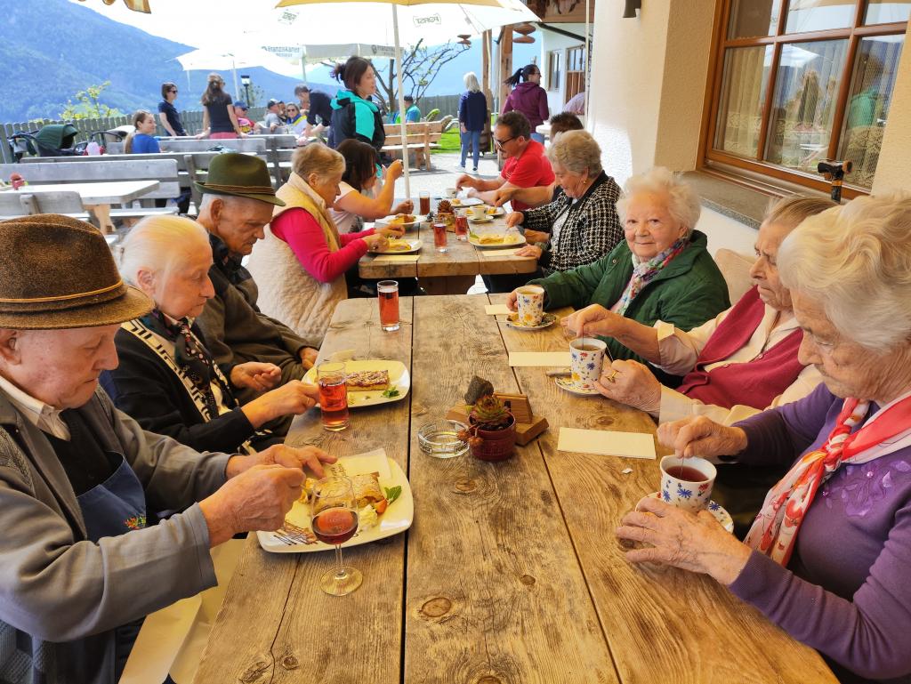 Eine besondere Überraschung haben uns die „Olteisenfreunde Villnöss“ angeboten. Mit ihren schicken Fahrzeugen kamen sie am Samstag, 11. Mai 2024 zu uns und holten unsere Senioren ab. Da staunten die Heimbewohner/innen nicht schlecht! Ungefähr 10 Oldtimer boten Platz für uns und so wurden wir teils mit offenem Dach und toller Musik zum Moarhof chauffiert.